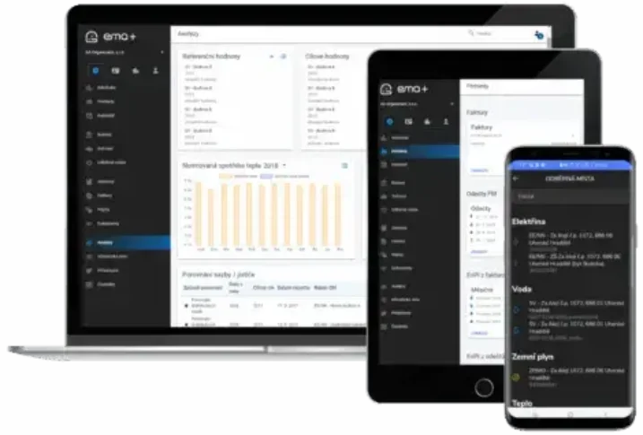 Komplexní softwarový nástroj EMA+ je určen pro sledování a vyhodnocování spotřeby všech druhů energií za účelem jejich efektivního řízení. Součástí tohoto řešení je mobilní aplikace EMA pro pohodlnou práci v terénu.